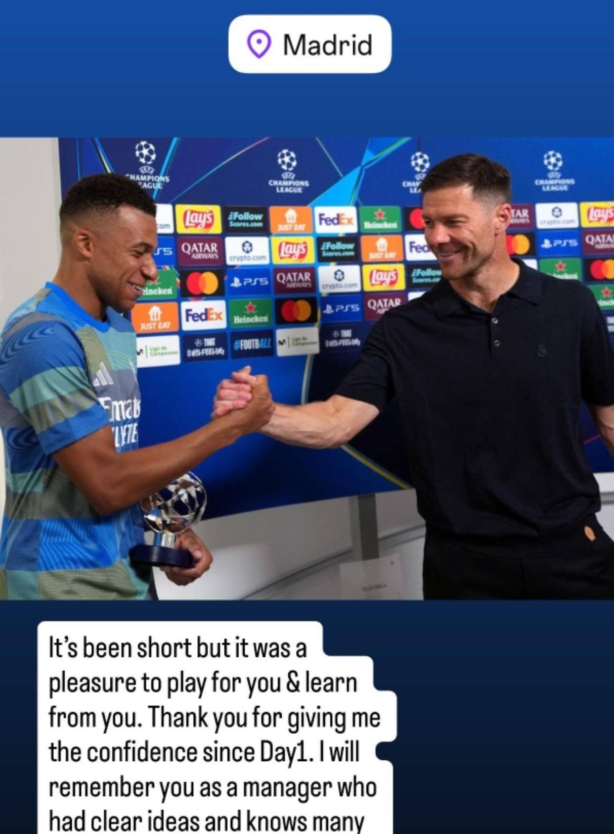 一觉醒来,皇马换主教练了!姆巴佩恭贺阿隆索:为您效力倍感荣幸